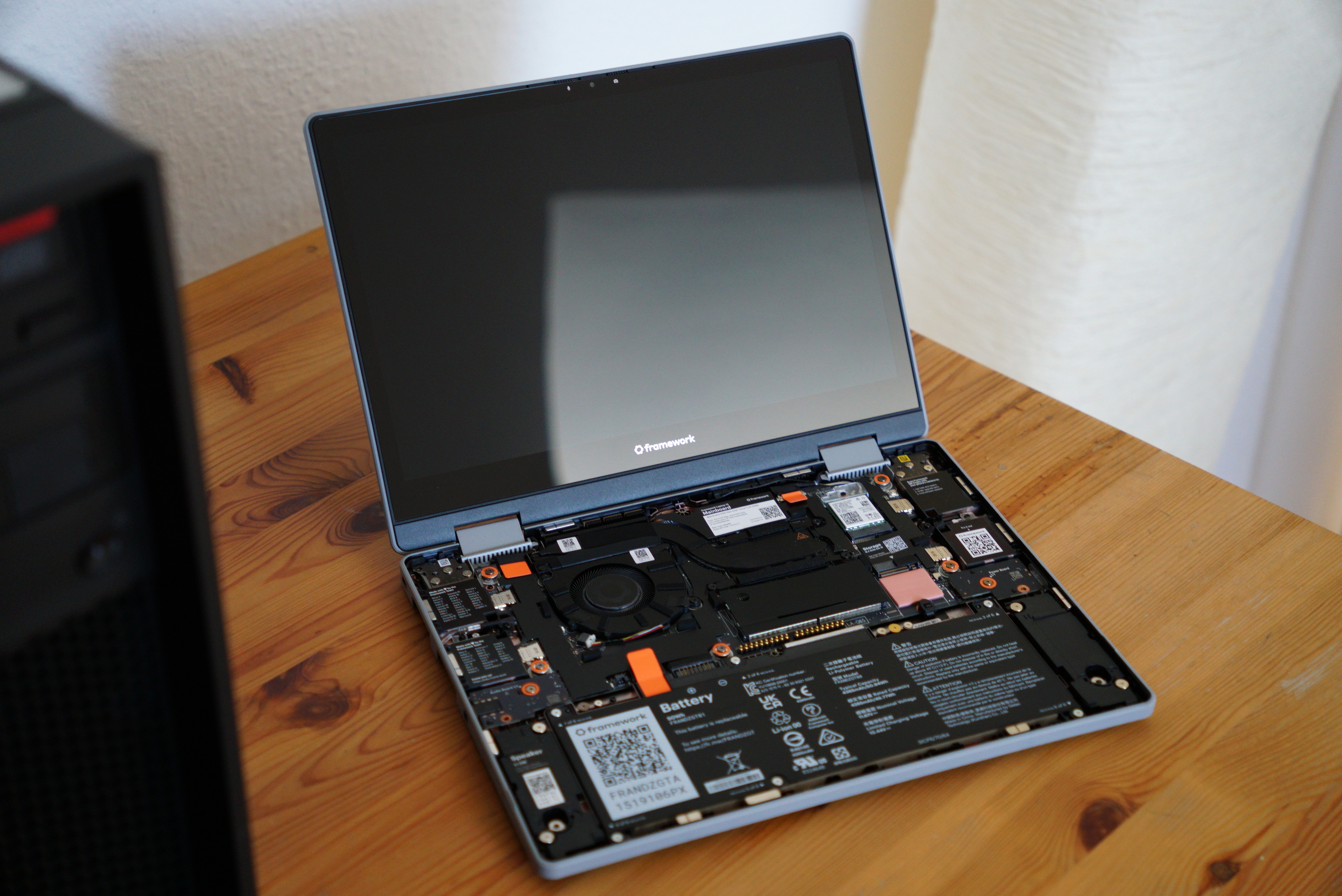 Before I dive into the details, I do want to say that I am super happy with this machine despite its shortcomings. I had expected a lot of them when buying this laptop already, so I wasn’t surprised by them. I am also just used to using what would nowadays be considered pretty terrible hardware – I used a Lenovo ThinkPad T60 without any problems during my apprenticeship back in 2020. I am very happy to finally have a very repairable and (for me) way more than capable laptop that I can just take with me anywhere I go! However, I can definitely see how some of the shortcomings may lead to someone opting to buy a “regular” laptop instead.